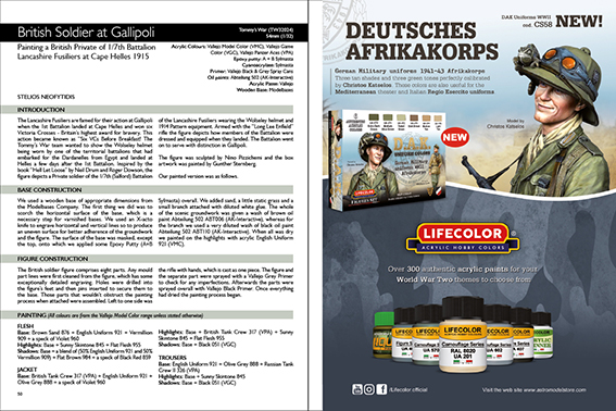 This is the 13th “Theme Collections” title in our new series that draws upon previously published articles in our Scale Model Handbook Special Editions Collection books where the content is dedicated to a specific category or period. In this latest edition we’ve gathered together eighteen themes on World War One, also known as The Great War, which has a popular following amongst the miniature figure modelling fraternity. That is a substantial amount of visual content! With 205 step-by-step photos and a total of 340 images, you have enough material for a comprehensive, high-quality project. Future titles in this new series will offer carefully chosen articles, grouped together into specific themes.